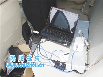 确定有人作弊,无线电管理处立即联系公安部门,决定在考场悄悄布控,并在周围秘密清查。工作人员转到南湖边的二中校园外侧的马路上,看到一辆悬挂江苏牌照的可疑轿车,连车带人当场控制。车辆左后轮胎旁边,明目张胆地摆着一个接收装置,沿着数据线,车后排座位上放着电脑等设备。
