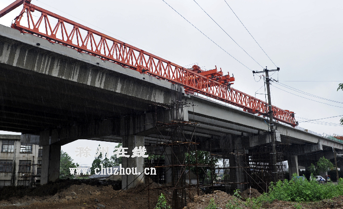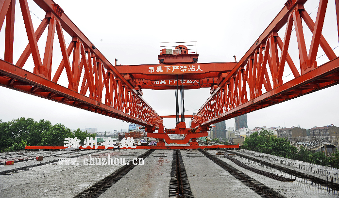 “咚”的一声巨响,6月24日上午7时58分,最后一片80多吨重的梁经转体90度后,完美地落在了明光路跨线桥上。随着最后一片梁的成功架设,投资2.3亿元、历时一年半、全长1.41公里、宽32.5米的滁城首个跨铁路线的桥梁全线胜利合龙。这标志着历时一年半精心磨砺的明光路跨线桥主体工程竣工,预计7月1日可通车。