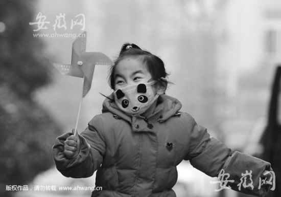 昨日,合肥街 头,一个戴着 口罩的孩子 在雾霾中玩 耍。专家提 醒,雾霾天气 时尽量减少 外出。 本报记者 王从启/摄