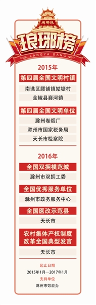 【开榜词】“一卷风云琅琊榜,囊尽天下奇英才。”无论是什么样的人才,都以能名列“琅琊榜”为荣。2015年,一部电视剧《琅琊榜》风靡全国,天下英豪无不为跻身天下第一榜竭尽心力。近年来,滁州的一些工作跻身全国先进之列,其工作标准之高,举措之实,用心之深,极具标杆之范。为了集中展示这些单位的风采,从今日起,滁州网将陆续推出他们的做法、经验和成绩,供全市上下学习、借鉴。