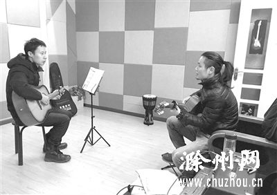滁城一家琴行内,一位老师在教授吉它。 记者卢晓东 摄