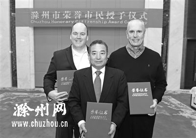 滁州网记者了解到,近年来,我市经济社会不断发展,对外开放稳步推进,外向程度不断提高,一大批友好人士来滁发展。为鼓励和表彰在我市经济社会发展和对外合作交流等方面作出突出贡献的市外人士,我市于2015年11月经市人大常委会审议通过并正式实施《滁州市荣誉市民称号授予办法》。2016年2月26日,张祥安代表市委、市政府向博西华公司康启正先生和福克斯先生授予首批“荣誉市民”称号。2016年11月,市人大常委会第二十九次会议审议通过伊莱克斯(北美)副总裁雅各布、富达集团董事长丁建峰、富达集团亚洲区副总裁泰德三人获“滁州市荣誉市民”称号。