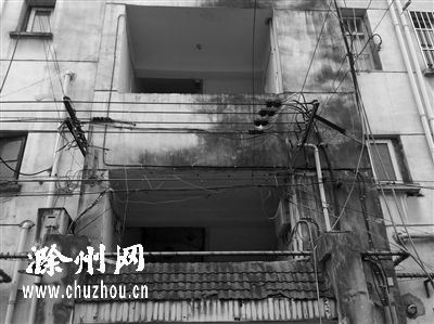 前天上午,滁州网记者来到位于滁城中都大道沿线的银花东区进行实地探访。从西门一走进该小区,记者就看见靠近路边的一栋居民楼外墙旁拉起了一条条的皮线,密密麻麻的,犹如空中的“蜘蛛网”一般。记者观察发现,这些横跨空中的皮线中,既有粗一点的民用电线,也有细一点的通信线缆。其中,民用电线架设的较高且走向规律,看起来还较为整齐。而通信线缆的走向则较为随意,横七竖八地挂在空中,十分凌乱。顺着小区转了一圈,记者发现,几乎每一栋居民楼前都存在“蜘蛛网”现象。