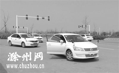 根据市民反映的情况,昨天中午,记者来到位于南谯南路与祈福寺西路交叉口的科目三考试路段进行“蹲点”。刚到路口,记者就看到沿着南谯南路来来回回“龟行”的陪考车辆足足有五六十辆。这些车辆大多是白色,有的挂蓝色牌照,有的挂黄色牌照,但前引擎盖上都竖着两个“耳朵”似的倒车镜。整个路段上不时有车走走停停,不时有学员从车上下来再换上新学员。