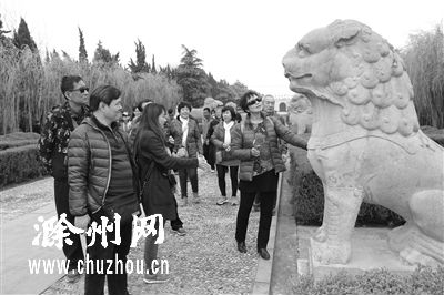 图为旅行团考察明皇陵景区。陈友田 摄