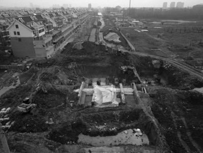 在古桥发掘现场,工人们正在清理外围的泥土。据了解,这座桥是在去年底发现的,由于桥位于当地李家庄,因此被居民称为李家大桥。省文物所专家王志介绍,李家大桥为青砖砌筑,修建于明代,位于明中都城的云霁街上。建成后,该桥一直在使用。上世纪70年代和90年代,出于修建凤淮路的需要,云霁街两次拓宽,李家大桥也因此被埋在公路以下。直到去年,凤阳县再次改造云霁街,李家大桥才重新被挖掘出来。