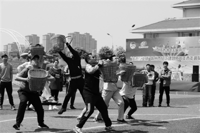 4月23日,“激扬青春、活力滁州”纪念中国共产主义青年团建团95周年青年趣味运动会在来安举行,来自全市各条战线上的优秀团员青年代表、大学生村官、青年农民致富能手组成的17支代表队、200余名选手参加了8个集体项目、4个个人项目的角逐。图为抛绣球比赛现场。