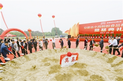 滁州网讯(记者吕静远)4月25日上午,安徽省小岗盼盼食品有限公司奠基典礼在小岗村举行。市领导张祥安、王图强、何希勇、许继伟、李玉平、汪建中、金力,安徽科技学院院长李震,安徽农业大学副校长姚佐文,省农垦集团副总经理陈仁虎,盼盼集团董事长蔡金垵等出席奠基典礼。