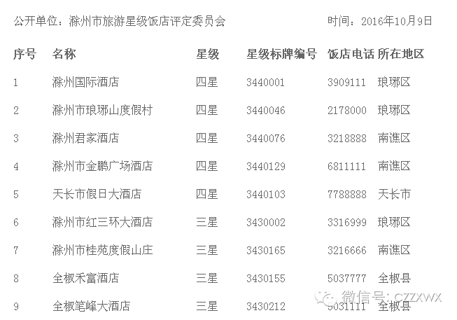 滁州市旅游星级饭店名单昨日新鲜出炉