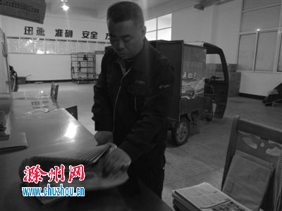 按照公司规定,上午上班时间是7:30,沈其柱每天要提前半个小时到单位。“10:00之前,我要把全部报纸、杂志和信件投递到用户手中。”在库房里把邮件装车后,记者和沈其柱一起,赶到行政服务中心,将邮件投递到信报箱。