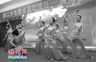 滁州网讯 5月19日,来安特教学校的学生们在表演舞蹈。为营造全社会关心残疾人,支持残疾人事业发展的良好社会风尚,当日,我市承办了“推进残疾预防 健康成就小康”——滁州市残疾人文艺汇演。该汇演通过舞蹈、歌唱等方式,展示了残障人士热爱生活、追求梦想、自强不息的精神风貌。 记者卢志永摄