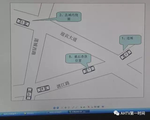 交警最先在监控中发现了嫌疑车辆的影子。交警钱坤说,嫌疑车辆于半夜12点23分左右,经过了枞阳县县城金麒麟卡口。