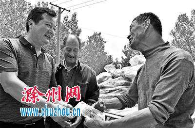 图为定远县招商委的同志将购买土豆款当场兑现给贫困户。 记者王家国 摄