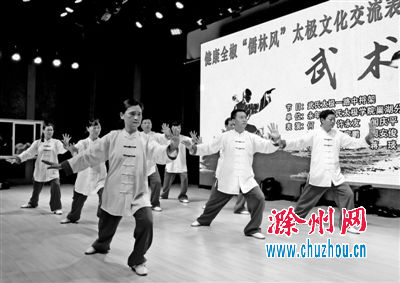 全国太极爱好者云集全椒交流 2017-06-20 15:43 滁州网 沈 果 我要评论0 扫描到手持设备 字号: 滁州网讯 6月18日,健康全椒“儒林风”太极文化交流表演大会在全椒县文化馆举行,来自上海、江苏、山东、安徽等地21个太极协会的上百名太极爱好者登台献技,展示了太极拳、太极扇、太极剑的各种套路、招式,为当地群众奉献了一场太极盛宴。 通讯员沈 果摄 相关阅读 关键词: 全椒 太极 爱好者 全国 交流 全椒县神山寺庙会运输保障运营方案2023-03-10 年俗活动“兔”年味2023-02-13 万人走太平 祈福新一年2023-02-07 全椒强“掌勺功夫”传“徽味无穷”2023-01-19 加快打造“智造强县康养福地” 推进现代化新全椒建设2023-01-18 滁州市发展改革委关于全椒路公园项目可行性研究报告的批复2023-01-10 椒岭风景线摄影采风活动启动2022-11-24 今日太平桥2022-11-04 全椒举办徽菜师傅技能培训2022-10-13 加快建设新阶段智造强县的“全椒行动”2022-09-27 责任编辑:王克 复制网址 打印 收藏 已有0人发表了评论 网友评论请遵纪守法并注意语言文明 您需要登录后才可以评论,登录| 注册 关于我们 | 联系我们 | 加入我们 | 版权声明 | 手机访问 | 网站地图 | 留言反馈 | 我要投稿 中共滁州市委宣传部主办 滁州日报社承办 Copyright?2009-2010 Chuzhou.cn. All Rights Reserved 滁州日报社 版权所有 皖网宣备3412015001号 皖ICP备11004325号-1 热线电话:0550-3022685