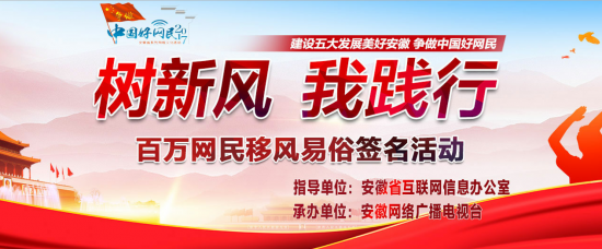 近日,安徽省“争做中国好网民”重点网络文化活动之一“树新风 我践行”百万网民移风易俗签名活动全面启动,旨在提升社会文明程度和广大网民素养。