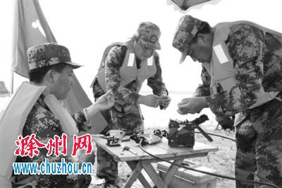 滁州网讯 6月19日至23日,琅琊区人武部组织中国电信滁州分公司民兵通信保障分队40人、抢修车辆5台和所需抢修工具器材,在沙河集水库开展为期5天的通信保障光缆断点接续、4G应急通信基站开通、被复线架设与撤收和无线电台操作使用等项目水上训练演练,提升汛期通信抢修保障能力。图为民兵通信保障人员在对通信光缆进行抢修。