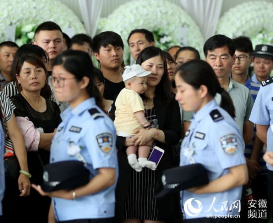 人民网合肥6月30日电(韩震震 沈果)6月18日深夜,全椒县公安局西王派出所警务人员钱宗清、苏武、彭涛,在护送群众返家途中遭遇车祸因公殉职。6月30日,安徽省滁州市全椒县为3人举行追悼会,3人家属及千余名干部群众前往送别。