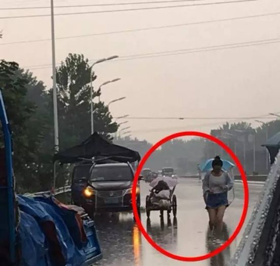 7月15日下午,一场倾盆大雨不期而至,在阜阳105国道上,上演了一幕令人暖心的画面。一位老奶奶推着板车在大雨中艰难前行,一位姑娘驾车路过,看到后立即停车,跑过去把一把雨伞塞在奶奶手中,随后姑娘冒雨跑回车上。