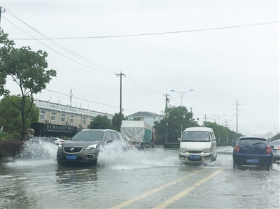 部分路段积水颇深。