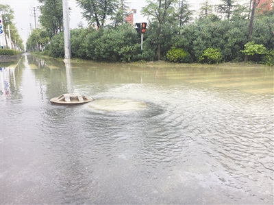 窨井水倒灌,好似“趵突泉”。