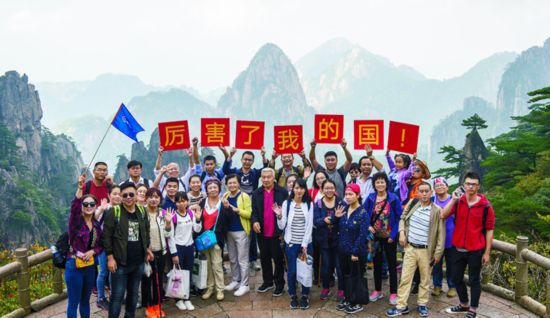 ▲ 10月1日,黄山风景区正式拉开今年“十一”黄金周大幕。图为中外游客在景区游玩、拍照。本报记者潘成摄