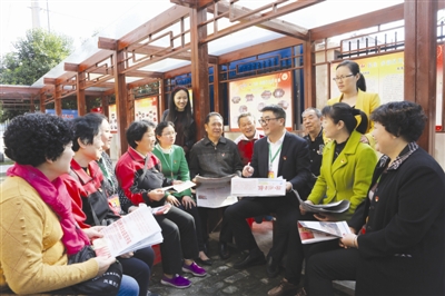 ▲10月20日上午,琅琊区凤凰社区第一党支部第二党小组离退休老党员、青年党员自发地聚集在一起,认真学习十九大报告精神,畅谈家乡五年来的发展变化,坚信在新时代中国特色社会主义思想指引下,一定能实现全面小康的美好愿望。 记者李晓村摄