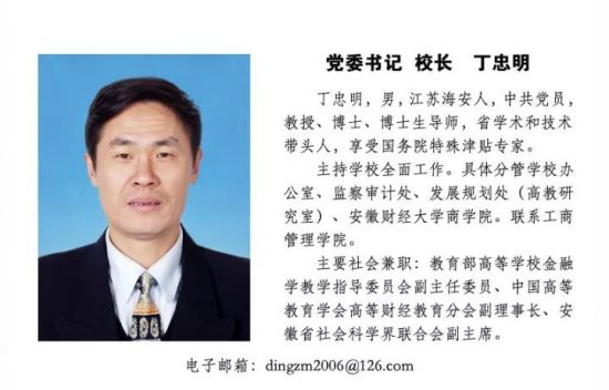 会上,省委组织部企事业干部处处长魏发斌宣读了省委任命文件。省委决定,丁忠明同志任安徽财经大学党委书记。由于年龄原因,姜利军同志不再担任安徽财经大学党委书记职务。(聊时局、安徽财经大学官网)