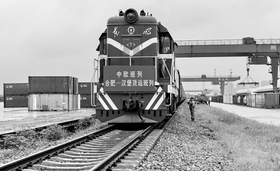 中欧班列(合肥-德国汉堡)载着“安徽造”产品从合肥货运中心出发。 (资料图片)本报记者李博摄