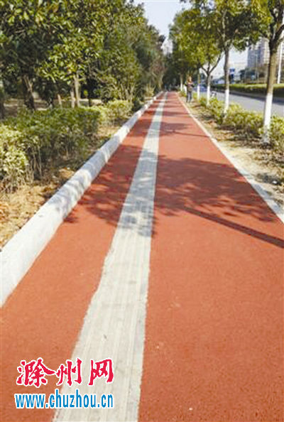 走访中,记者在龙蟠大道南谯路至凤阳路路段看到,新建的人行道位于道路两侧的绿化之间,橙红色路面如同景区绿道,两侧皆是茂盛的植被。住在高速东方天地小区的李女士对这条新建的人行道赞不绝口:“设计非常人性化,既是人行道,也是居民休闲散步的游步道。”