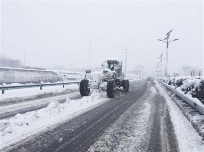 交通部门组织大型机械清除滁宁快通积雪。董 超 周泽莉摄