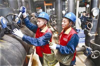 近日,在滁城一居民小区,滁州城郊供电公司电力技术人员在对地源热泵装置集中采暖系统的电气设备运行状态进行检查。据了解,用户采用地源热泵装置集中采暖系统(居民小区领域)可在现行电价基础上节省0.056元/千瓦时。