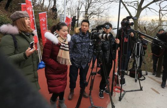 导演组正在商量拍摄角度。 本网记者 汪鸣 摄