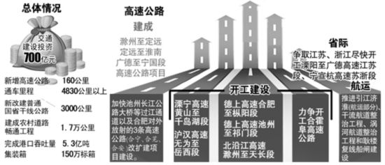 今年安徽省三条高速将建成通车 2018-01-19 09:05 人民网 扫描到手持设备 字号: 据安徽商报报道 记者昨从2018年全省交通运输工作会议上获悉,今年我省将完成交通建设投资700亿元,其中高速公路建设依然是重头戏,将建成滁州至定远、定远至淮南、广德至宁国段3个高速公路项目,同时还有多条新路开工。(记者 马翔宇/文 余红霞/图) 相关阅读 关键词: 三条 安徽省 高速 弘扬江淮工匠精神 奏响“金牌蓝领”华章2024-05-17 安徽省推进内外贸一体化发展 内外贸产品同线同标同质全面推进2024-05-14 打造国际化一流营商环境,安徽这么干2024-05-11 安徽多地气温将突破30℃2024-05-09 “知产”变“资产”!安徽推出知识产权质押融资专属金融产品“知易融”2024-04-25 安徽省立法保护自然保护区2024-04-17 安徽探索水电气网等管沟“随路先建”2024-04-10 安徽今年小麦赤霉病呈大流行态势 已累计投入防控资金7.49亿元2024-04-08 第五批新型农业经营主体典型案例公布2024-04-03 安徽公众生态环境满意率连续4年九成以上2024-03-28 责任编辑:陈姝妤 复制网址 打印 收藏 关于我们 | 联系我们 | 加入我们 | 版权声明 | 手机访问 | 网站地图 | 留言反馈 | 我要投稿 中共滁州市委宣传部主办 滁州日报社承办 Copyright?2009-2010 Chuzhou.cn. All Rights Reserved 滁州日报社 版权所有 皖网宣备3412015001号 皖ICP备11004325号-1 热线电话:0550-3022685