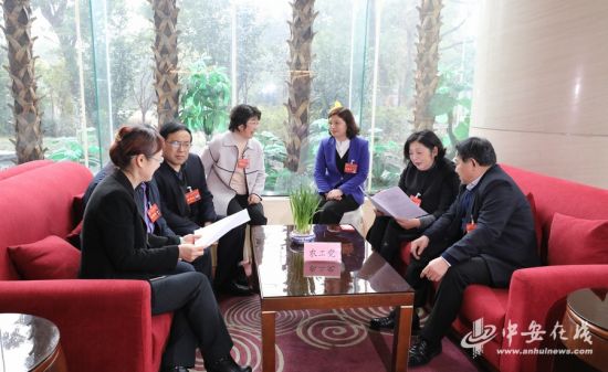 参加省政协十二届一次会议的政协委员们一起讨论提案