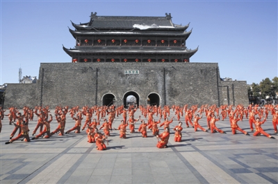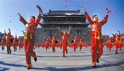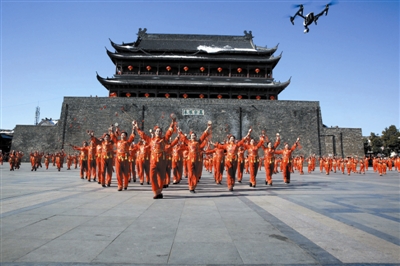 1月12日,中央电视台戏曲频道摄制组一行来到凤阳县,在鼓楼文化旅游休闲广场录制戏曲春晚开场短片---凤阳花鼓。260名老中青少花鼓舞者冒着零下12℃低温,身着单薄的艳丽服装,欢快跳起柔美的舞姿,将向全国观众充分展示全国非物质文化遗产凤阳花鼓的独特魅力。