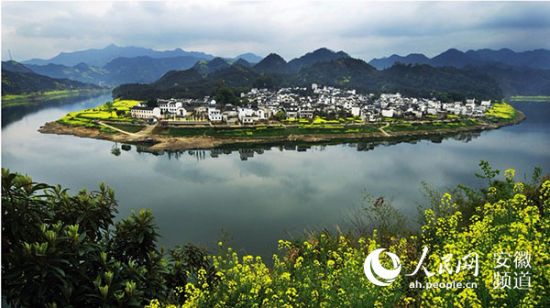 1月19日下午,2018年“新时代、新梦想”网络媒体新春走基层活动来到歙县深渡镇,由此泛舟而上,江面清风徐徐、水波不兴,沿途树木葱茏,两岸宛如水墨的徽派古建在山水画廊间流动。