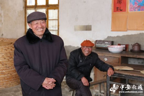 图为记者们在小岗村采访大包干带头人严金昌(左一)和关友江(右一)。