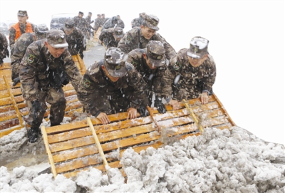 打赢这场铲雪除冰抗寒潮攻坚战,要感谢广大驻滁部队官兵的迅速驰援。他们顶风雪、斗严寒,深入多地义务清除冰雪,充分显示了军民一家亲的鱼水深情,让滁州“全国双拥模范城”的品牌更加光彩夺目。