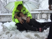朱华峰:冰雪天轿车侧翻伤者危 好交警跪抱撑伞急救援