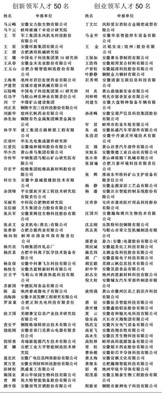 为贯彻省委、省政府五大发展行动计划,加快创新创业人才高地建设,近期我们在省重点产业领域遴选了100名高层次人才,作为第四批省“特支计划”创新创业领军人才建议人选,现予以公示。如对人选在能力、业绩和道德品行等方面有异议,请于2018年2月19日前口头或书面向我们反映。