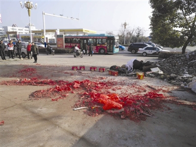 滁州八中附近,店家违规燃放“开门炮”。李炳斋 摄