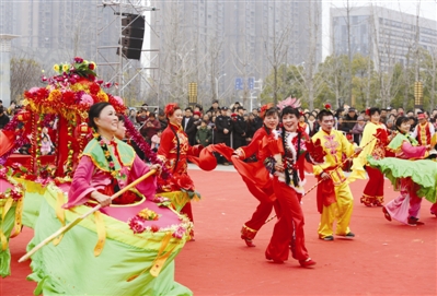 演出现场内是热火朝天的精彩节目,现场外也有不少市民驻足在非物质文化遗产展架前,仔细了解全市非遗项目等情况。原来,今年的花灯大赛是全市首个“非物质文化遗产月”系列活动之一,此次花灯大赛中多个节目系省、市级非物质文化遗产项目,这个为丰富人民群众文化生活、彰显本市地域文化个性而精心打造的民间艺术品牌,已经承担起越来越多的非遗保护与传承责任。