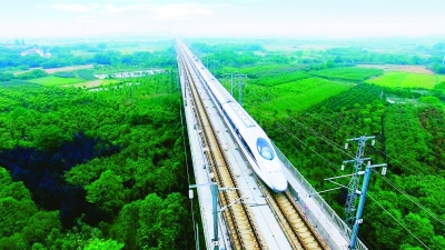 从南京南站乘坐高铁,18分钟即可到达滁州。图为经过滁州的高铁。