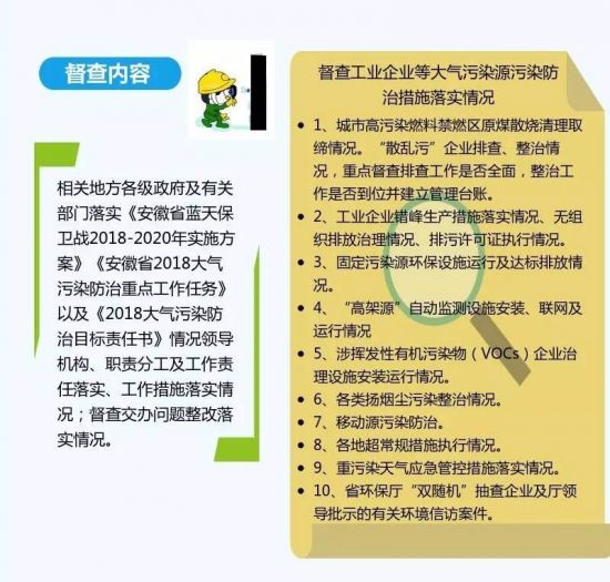记者从安徽省环保厅获悉,为改善安徽省环境空气质量,打赢蓝天保卫战,2018年3月至2019年3月,安徽省将持续进行大气督查,范围包括省内16个省辖市。