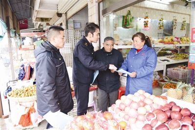 3月7日,南谯区城管局执法人员在安宁路对沿线商户开展文明创建宣传。