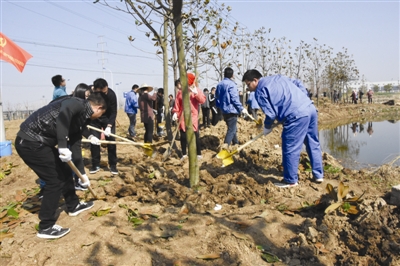 大家抹着汗,握着铁锹,望着新栽种的树木,高兴地说“今天来这里参加义务植树,不仅能进一步完善新城区的基础建设,还将为群众休闲、观光增添新的去处。我们累并愉快着。”