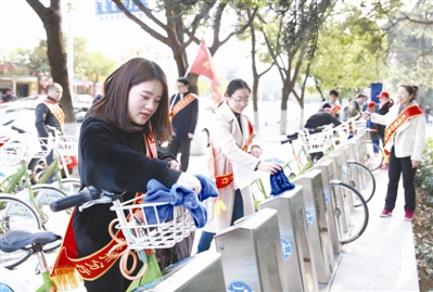 3月16日,琅琊大道,志愿者们在擦洗公共设施。当日,市委宣传部在琅琊大道组织开展了一场“美化环境志愿者行动”活动,结合学雷锋志愿服务月活动,志愿者们沿途开展了文明交通劝导、捡拾垃圾、清理牛皮癣小广告、擦洗公共设施等活动,为我市文明城市创建贡献力量。