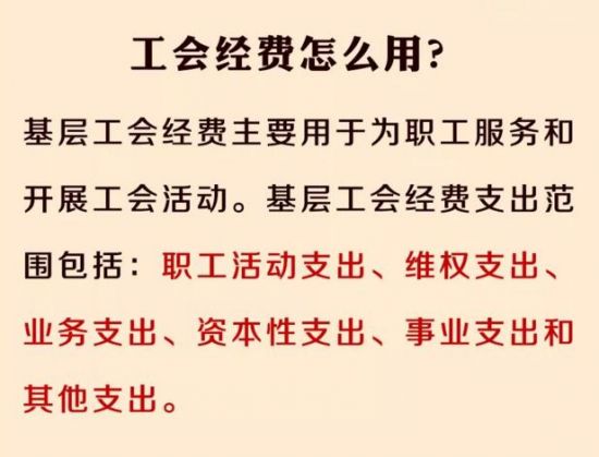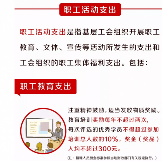 据安徽省总工会客户端消息 中华全国总工会发布了新印发的《基层工会经费收支管理办法》,就工会经费用于服务职工的各项开支再次做出明确规定。就在近日,省总工会发布了《安徽省基层工会经费收支管理实施办法(试行)》,就工会经费用于职工的各项开支做了全面、具体、明确的规定。
