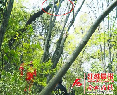 3月31日13时许,合肥119指挥中心接到报警,大蜀山森林公园有小孩爬到树上下不来。接到报警后,合肥消防支队井岗中队紧急赶到了现场。
