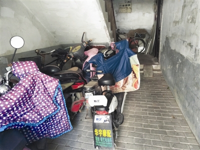 滁城银花东区一楼道口摆放着几辆电动车,使楼道变得更为狭窄。